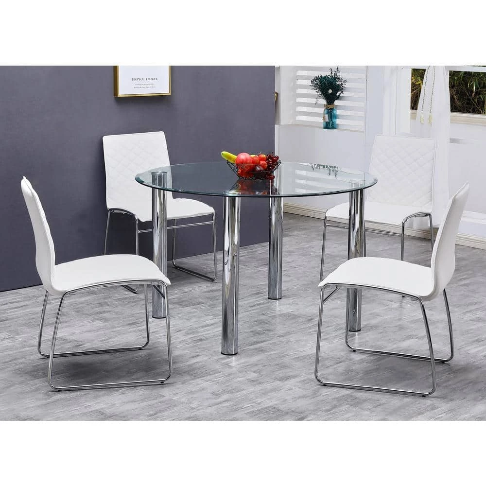 This faux leather barstool comes in colors of black, white, and grey with chrome legs . Modern and comptemporary style. Bring this home today.