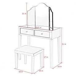 Primrose Black Vanity Tables with Trifold Mirror by Inspired Home