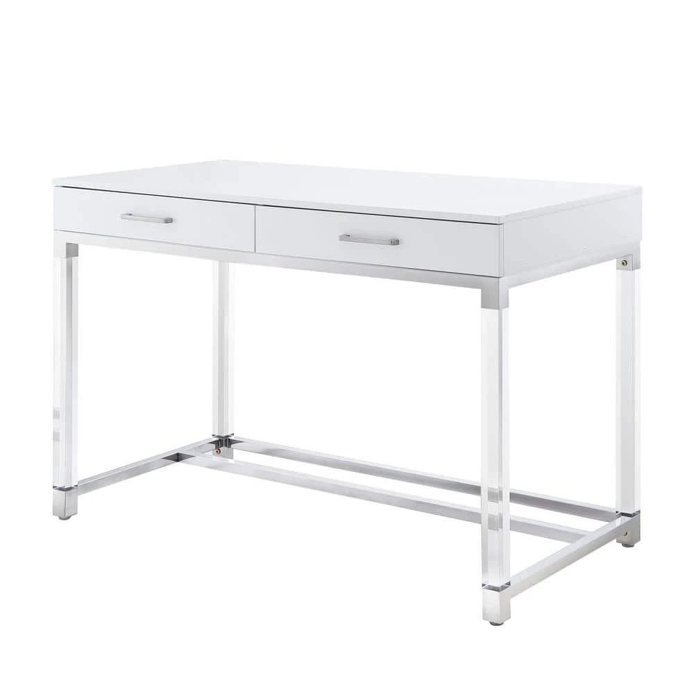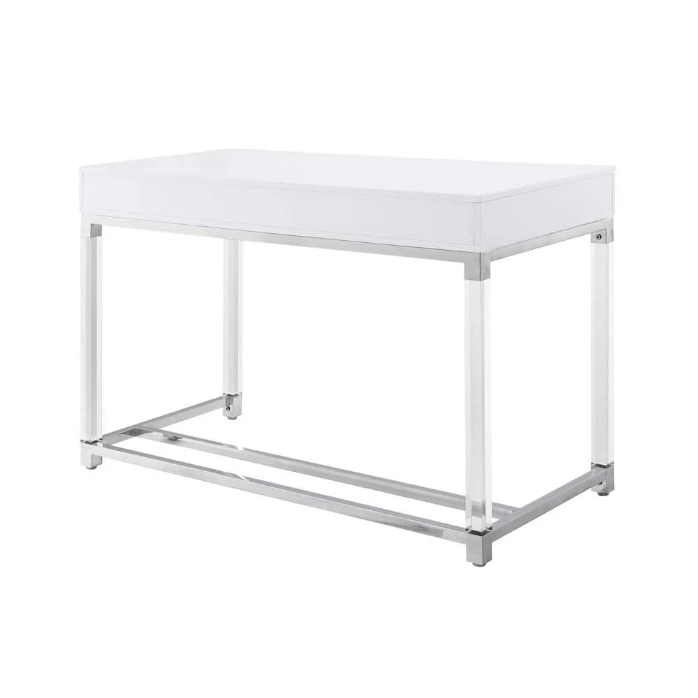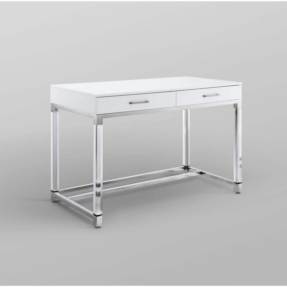 - Elegant design: our trendy writing desk adds glamorous glow to any room, high gloss elegant finish, clear acrylic legs and polished stainless steel frame on the bottom with matching handles bring luxurious look, stool is not included