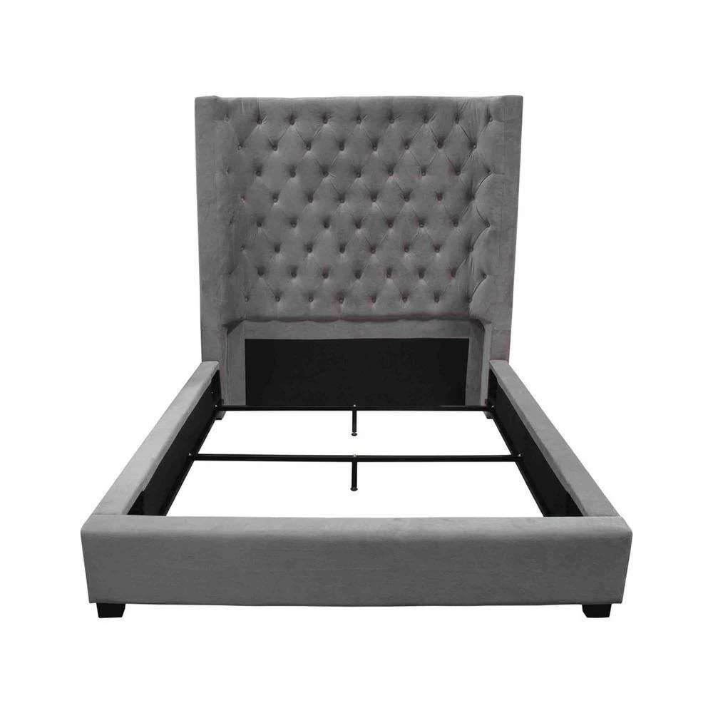 This tower high profile bed is upholstered in velvet fabric with a curved back and tufted look to give it more dimension. It is constructed in solid and manufactured wood which is highly supportive and durable for a lifetime. This bed will look perfect in a master suite and can be easily match with any mirrored or modern furniture in your bedroom. A box spring/ foundation is required for this bed.