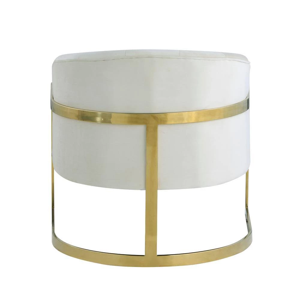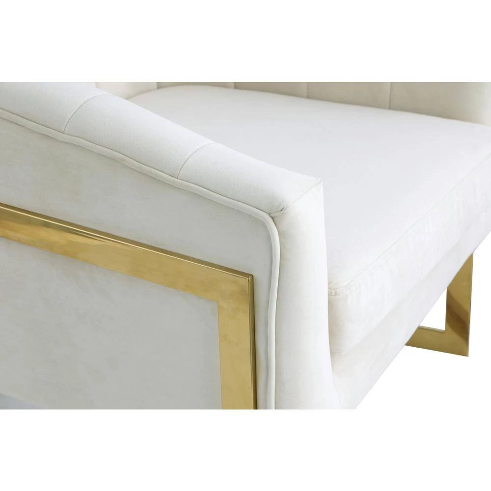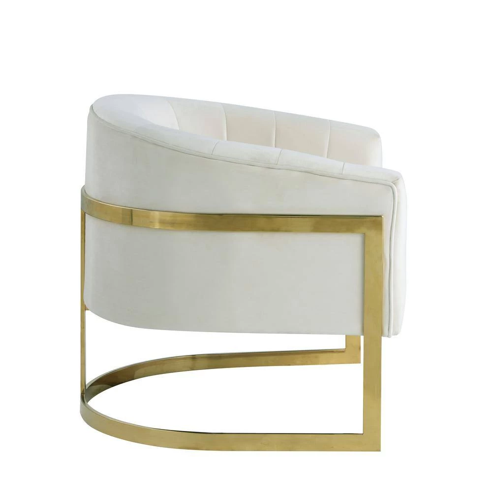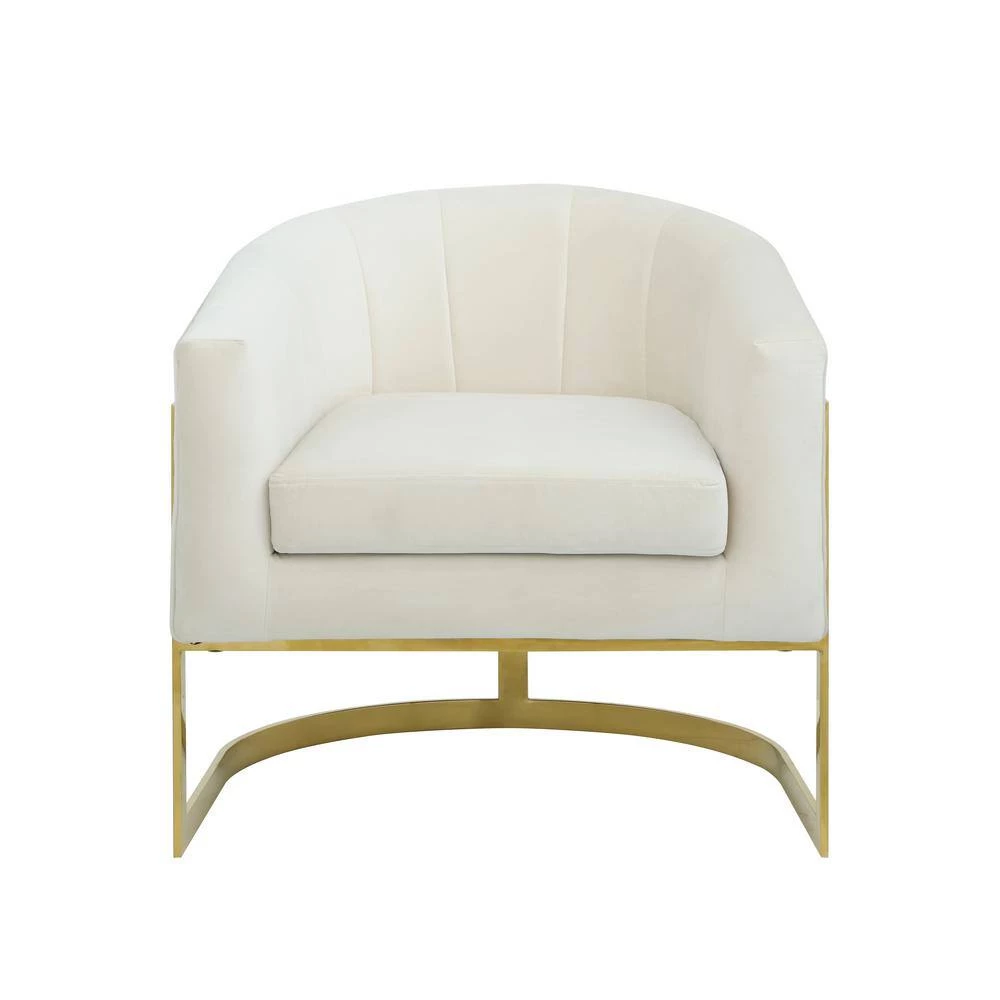 Bring this marvelous modern arm chair into your living room to glamorize your style. This accent chair features velvet fabric upholstery with gold plated stainless steel legs. The base has floor protectors so that you can keep peace of mind for delicate floors. The chair is available in 5 different colors – Blue, Black, Gray, Pink, or Cream.