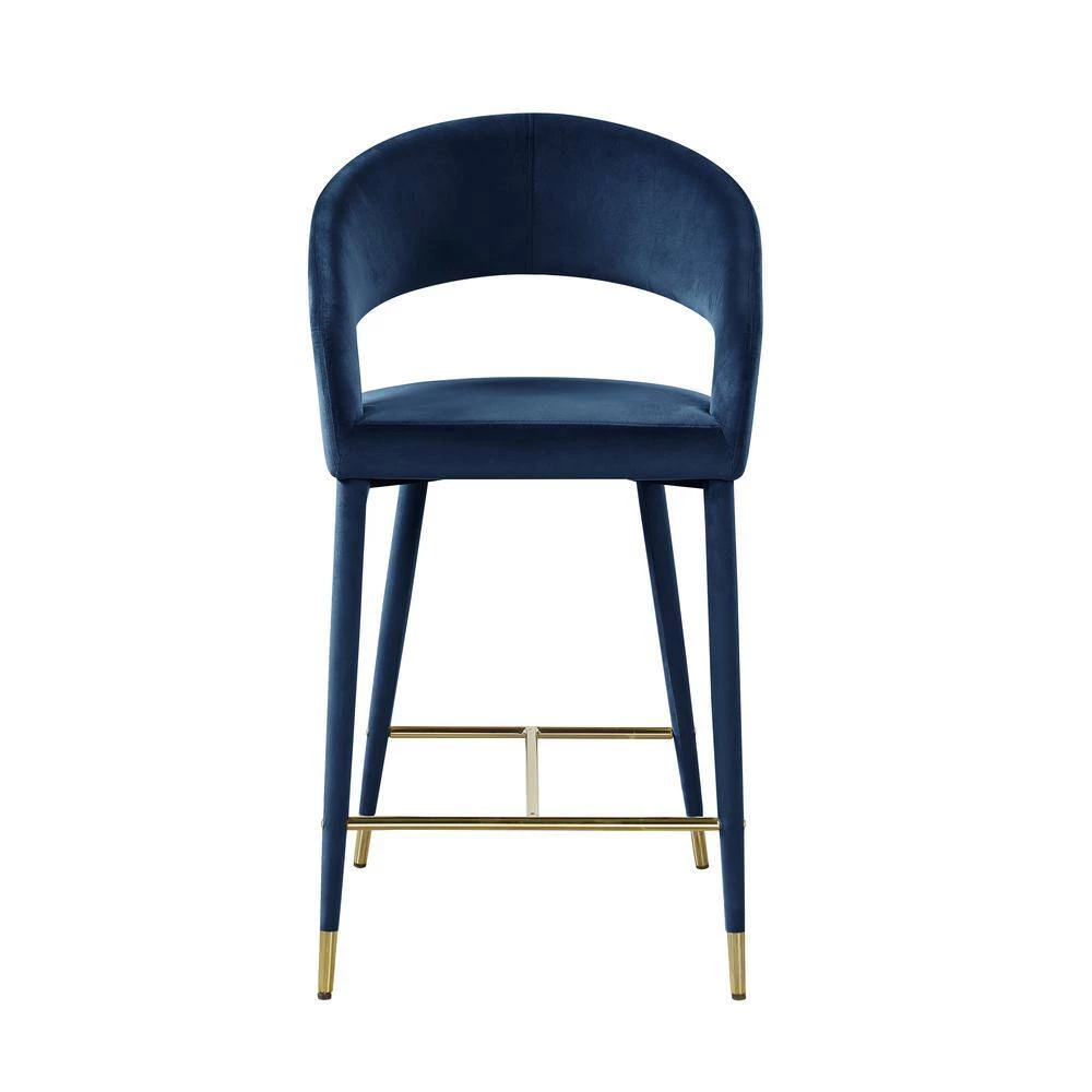 Modern glam dining chairs are a statement piece. These chairs feature a velvet fabric upholstery and gold plated chrome tipped legs. Seat has a medium firm rating. Rounded arms and back make for a tight and secure experience. This chair is comfortable while remaining elegant.