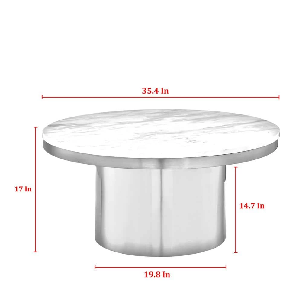 With our round coffee table, modern meets glam. Stainless steel pedestal and luxurious marble will instantly elevate your living room design. The opulent charm of natural marble stone provides a magnificent surface to put your afternoon coffee or place books and magazines. Our beautiful marble coffee table is a basic and useful piece, free of excessive decorations.