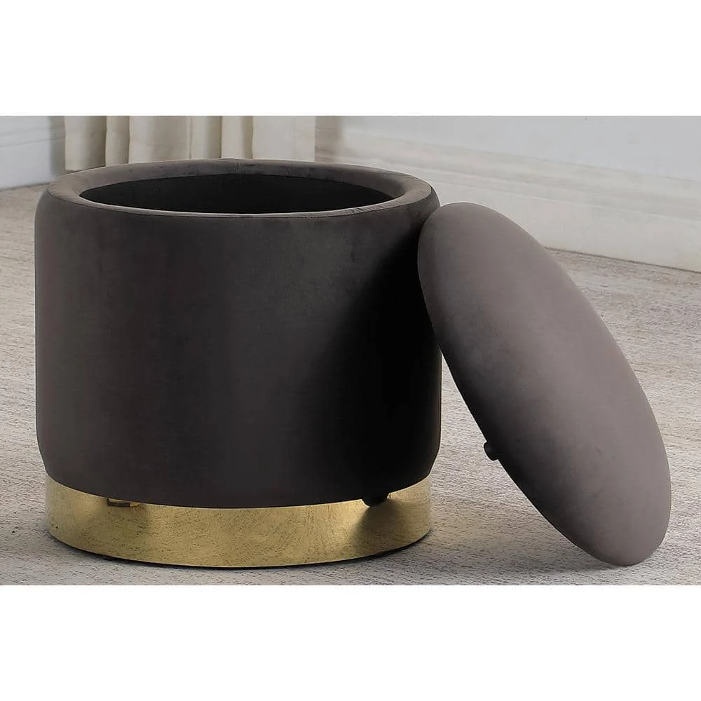 Entice your guests with this quirky storage accent ottoman. This ottoman features a velvet fabric upholstery with a gold plated stainless steel base trim. Ottoman can be used for anything and is versatility with the storage makes it stand out. Showcase this ottoman to your friends and family today!
