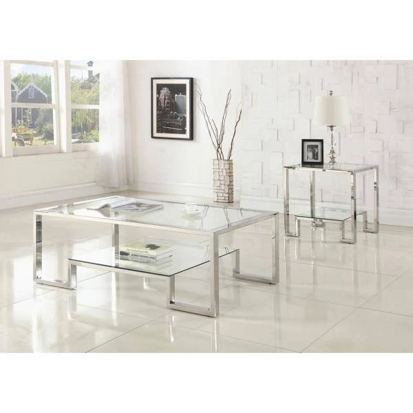 Accentuate the decor in your home with this beautifully clear glass table. Made of stainless steel and clear glass top, this table will give your living room a more airy and contemporary look. With the clear and silver finish of the table, it will surely be the centerpiece of your living room. This table comes fully assembled.