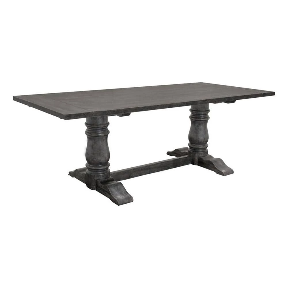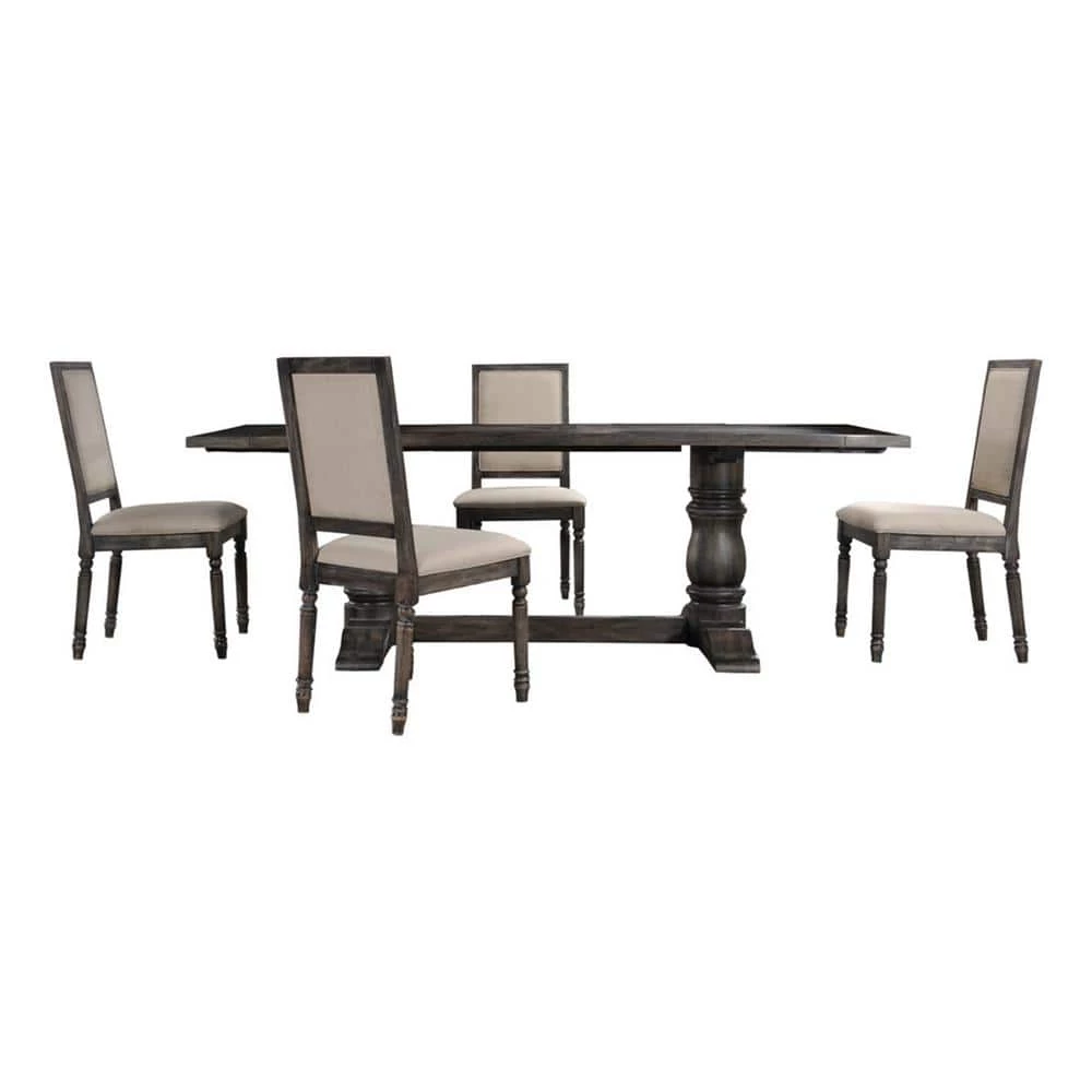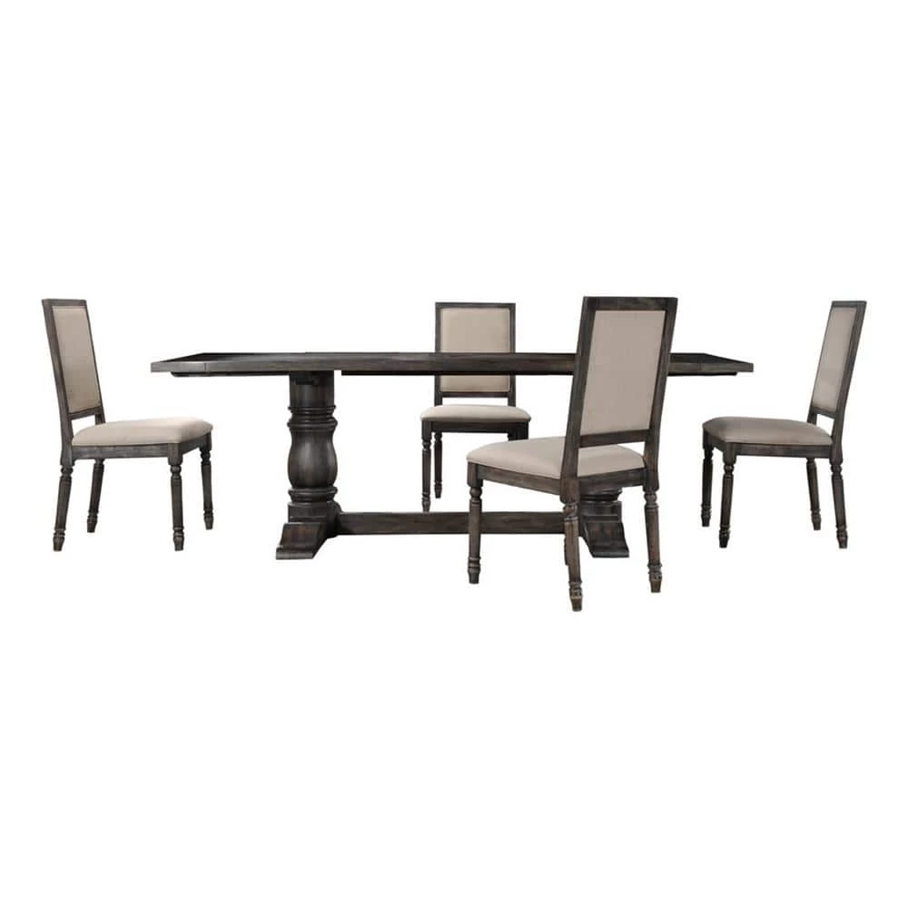 Add style and a chic look into your dining room with this special edition of the Lisa Rustic Collection. The beautiful smoked gray, made in solid wood and upholstered in taupe fabric chairs will provide a hours of comfort for your family and friends. The table is 87 in. Long that can fit 6-chairs comfortably.