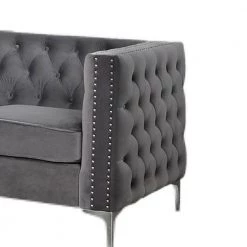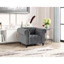 Flotilla 45 in. W Gray Round Arm Velvet Chesterfield Arm Chair by Best Master Furniture