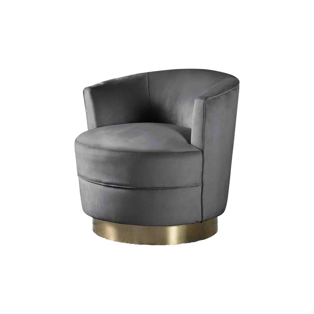 Include this modern swivel accent chair in your next home remodel. This chair is upholstered in a nice and luxiorious velvet fabric. The stainless steel finish also gives it a nice modern touch.