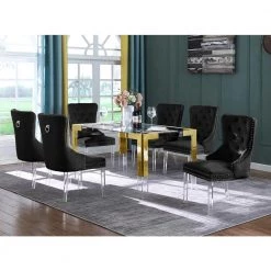 Leah 60 in. W Rectangle Glass Dining Table in Gold (Seats-6) by Best Master Furniture