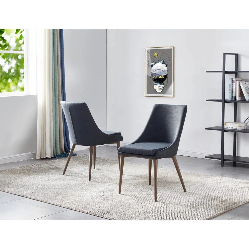 This side chair is quintessential to any glam or modern decor floor plan. The upholstery is made out of premium linen fabric. The base of the chair is wood-tone. Chair also have plastic floor protectors to keep your floor safe!
