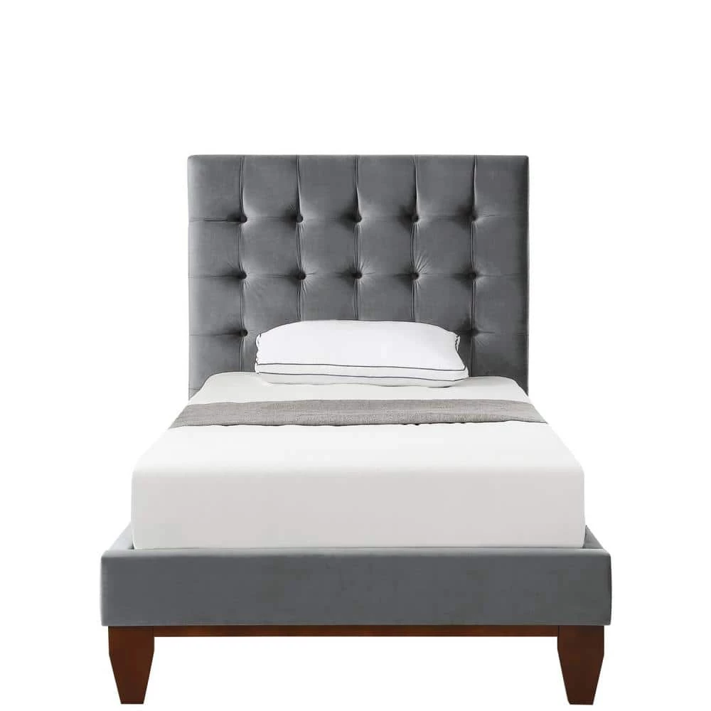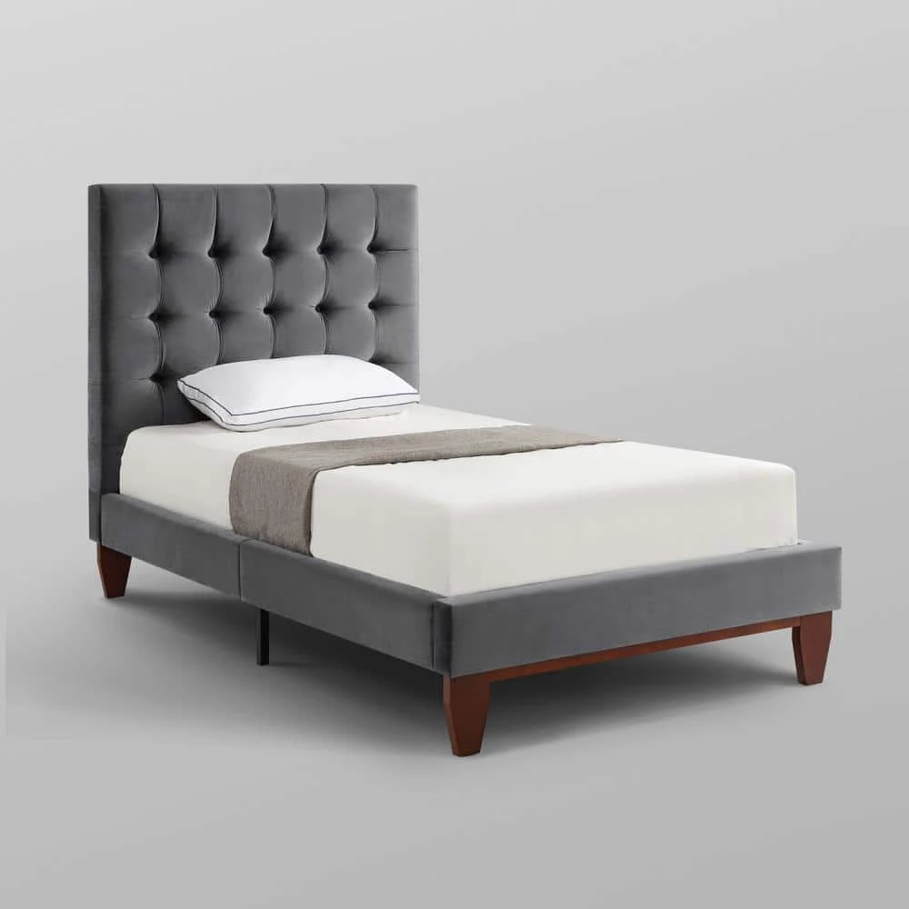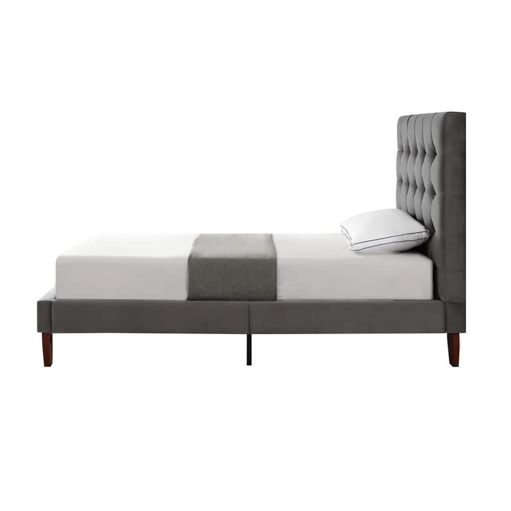 Our bed frame adds a measure of modern sophistication and elegance to your bedroom. Get the feeling of laying your head down each night in a upscale five star hotel room. This stylish bed frame features exquisite fabric, a button tufted high density foam padded headboard and tapered solid wood legs to provide a luxurious end to your day.
