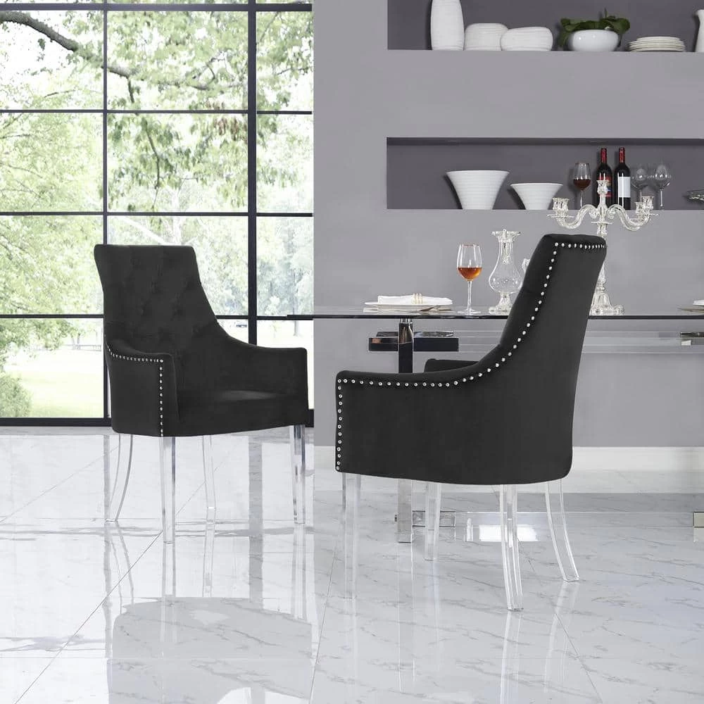Our trendy dining chairs in set of 2 add stylish intrigue to your dining room and kitchen area. These beautifully upholstered dining chairs create a warm, inviting seating option with a unique style. It will add an aura of sophistication to your dining room with its alluring comfort and bold, luxurious style.